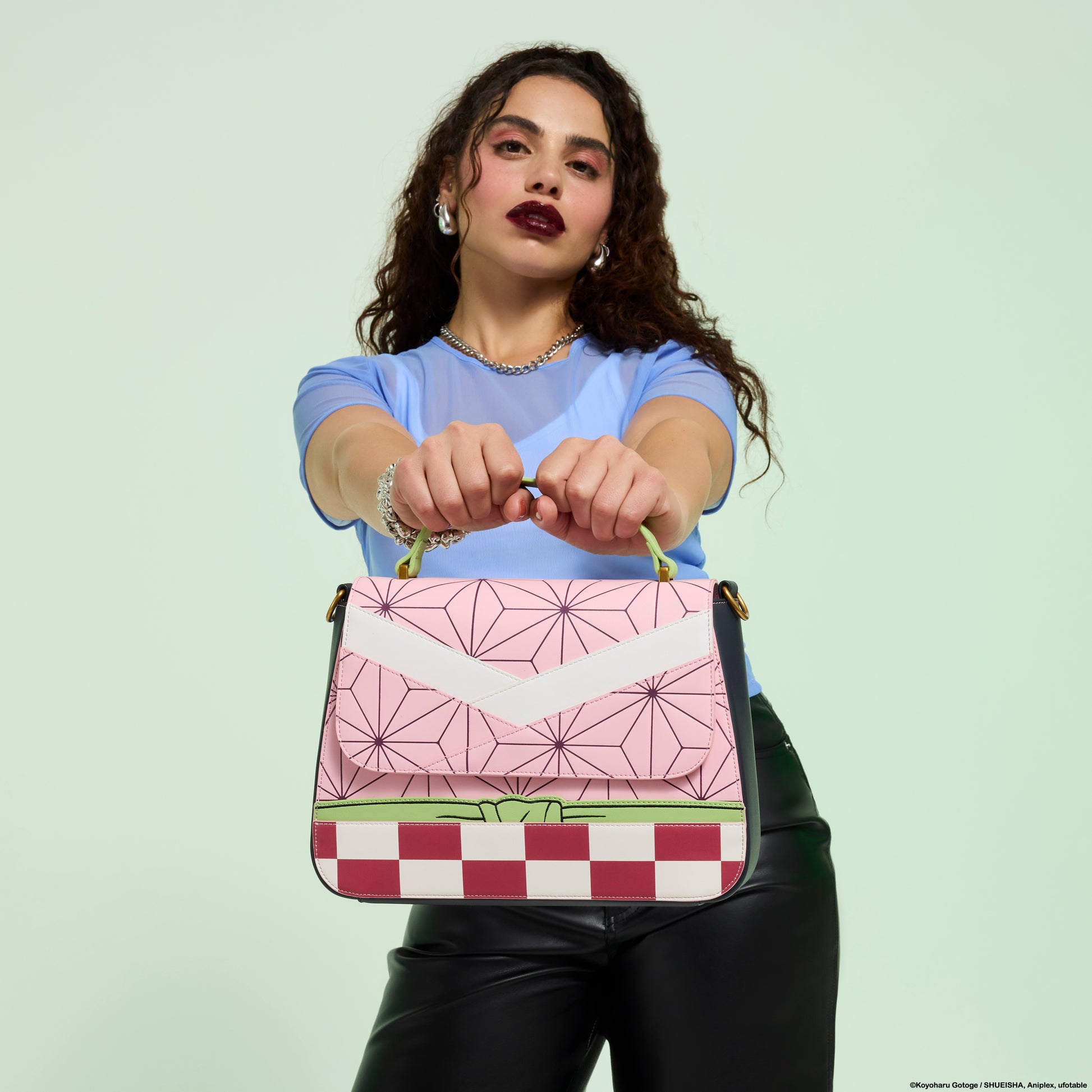 The design of this bag is inspired by Nezuko Kamado's ensemble. You'll find embroidered and debossed details to uplevel the look. The top handle is a 3D-molded bamboo handle!