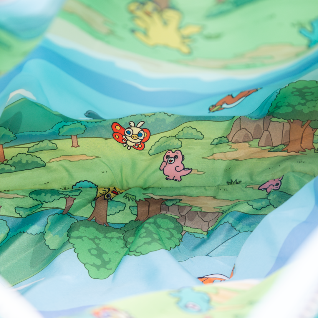 This unique tote blends ripstop and padded nylon materials, creating a structured, lightweight, and ultra-durable bag perfect for everyday adventures. One side features a full die-cut silhouette of Chibi Godzilla himself—big smile, tiny claws, and all—while the reverse showcases a subtle shadow of Godzilla, symbolizing Chibi’s admiration for his legendary dad. Inside, the bag features a colorful scenic lining directly inspired by the series' backgrounds, bringing the world of Chibi Godzilla everywhere you go. This tote is the ideal blend of fashion, fandom, and heart. To make this piece even more collectible, every bag includes two charms: the exclusive Whatever! Makes You Happy exclamation-point acrylic charm and a vibrant flame-shaped padded charm featuring the Chibi Godzilla logo in Japanese. Clip them to your handles, your keys, or your other bags—these charms make it easy to flaunt your kaiju pride.