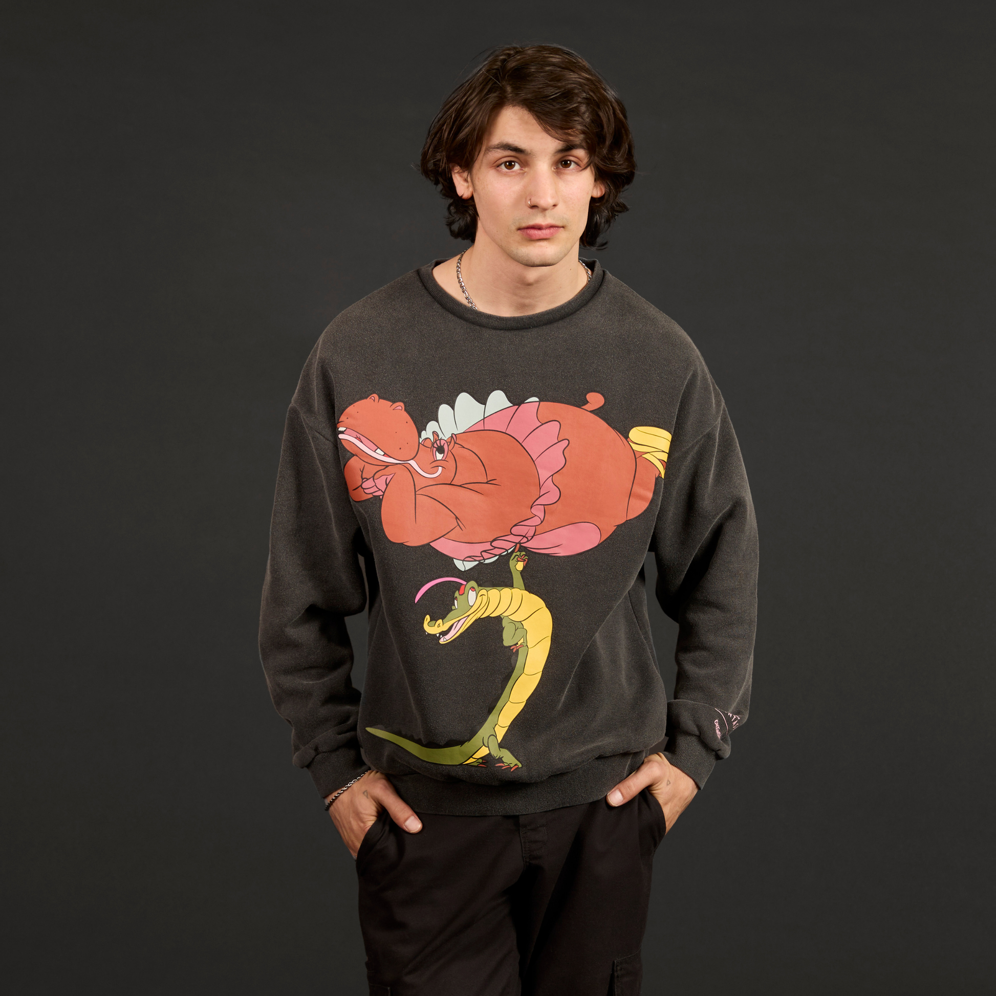 Dance the hours away with our Disney’s Dance of the Hours Crewneck. This cozy crewneck features a front graphic of Disney’s Hyacinth Hippo and Disney’s Ben Ali Gator with “Disney’s Fantasia” printed on the back.