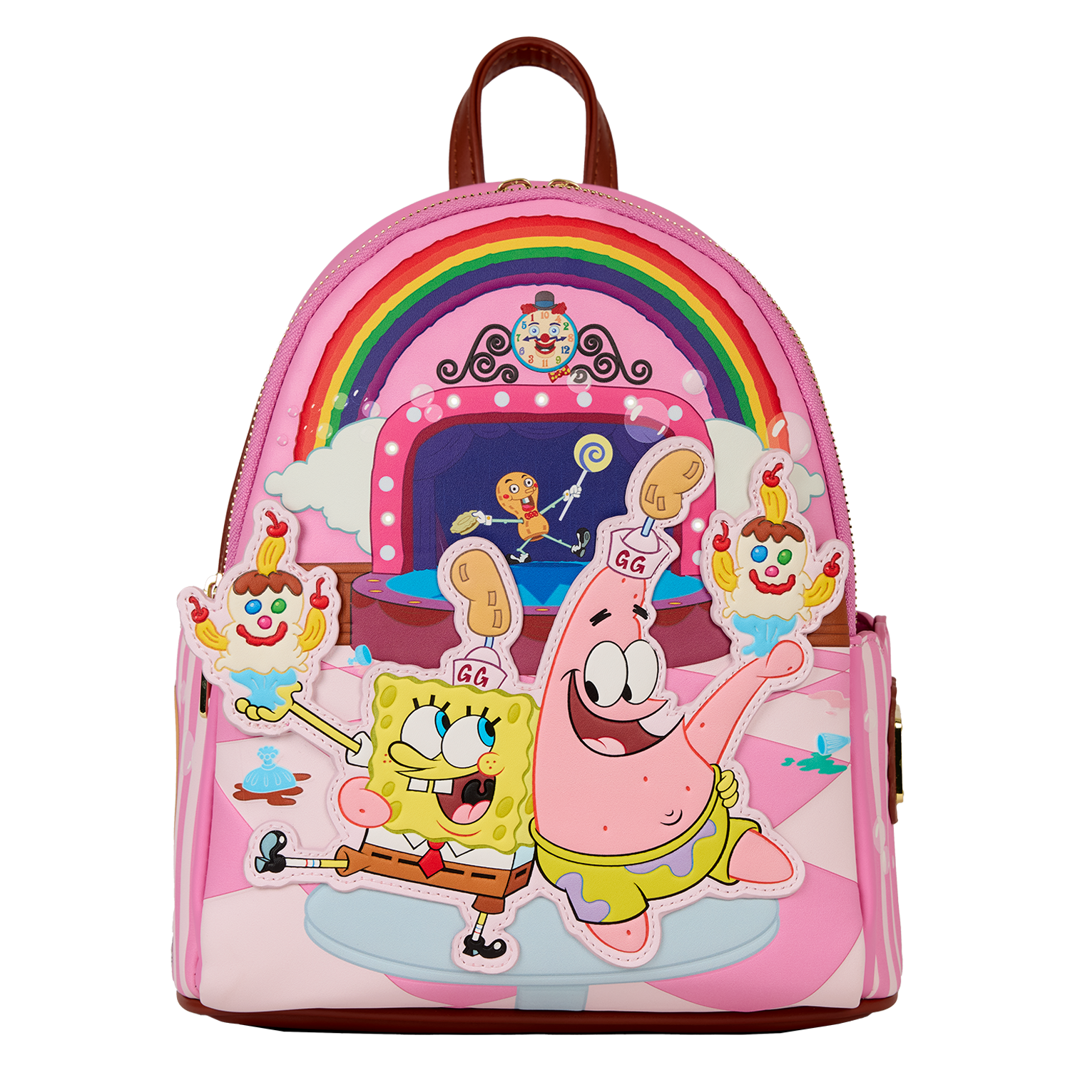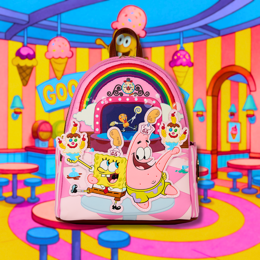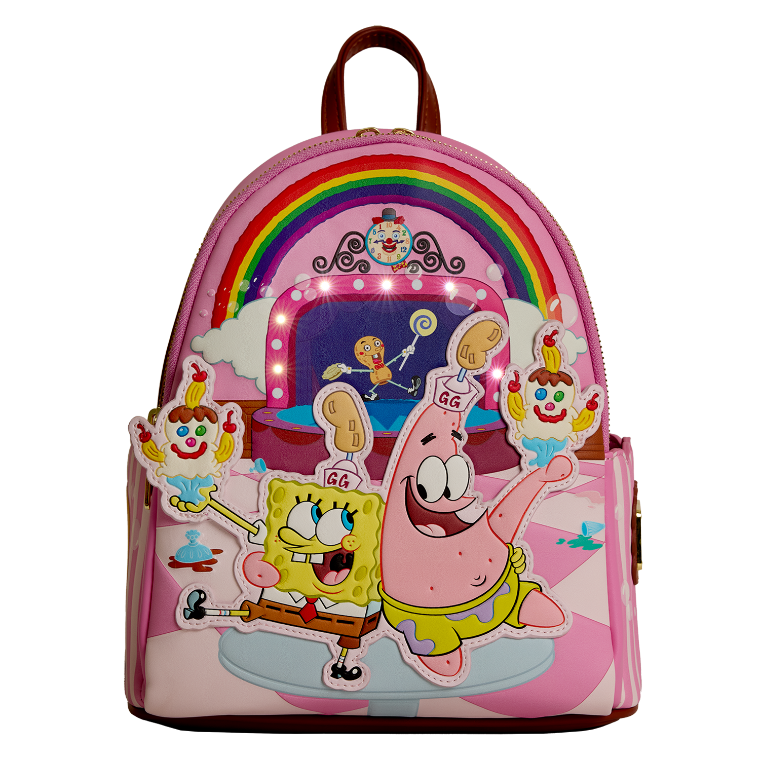 Goofy Goobers, unite! If scarfing down a Triple Goober Berry Sunrise is your style, say hello to this SpongeBob SquarePants mini backpack. The front pocket recreates the interior of Goofy Goober’s, with SpongeBob and Patrick as appliques, holding up a couple of sundaes. Just above them, everyone’s favorite sea peanut, Goofy Goober, appears on stage, with lights above him. And, they light up! Pack your daily essentials and dig into the fun with this deliciously delightful accessory.