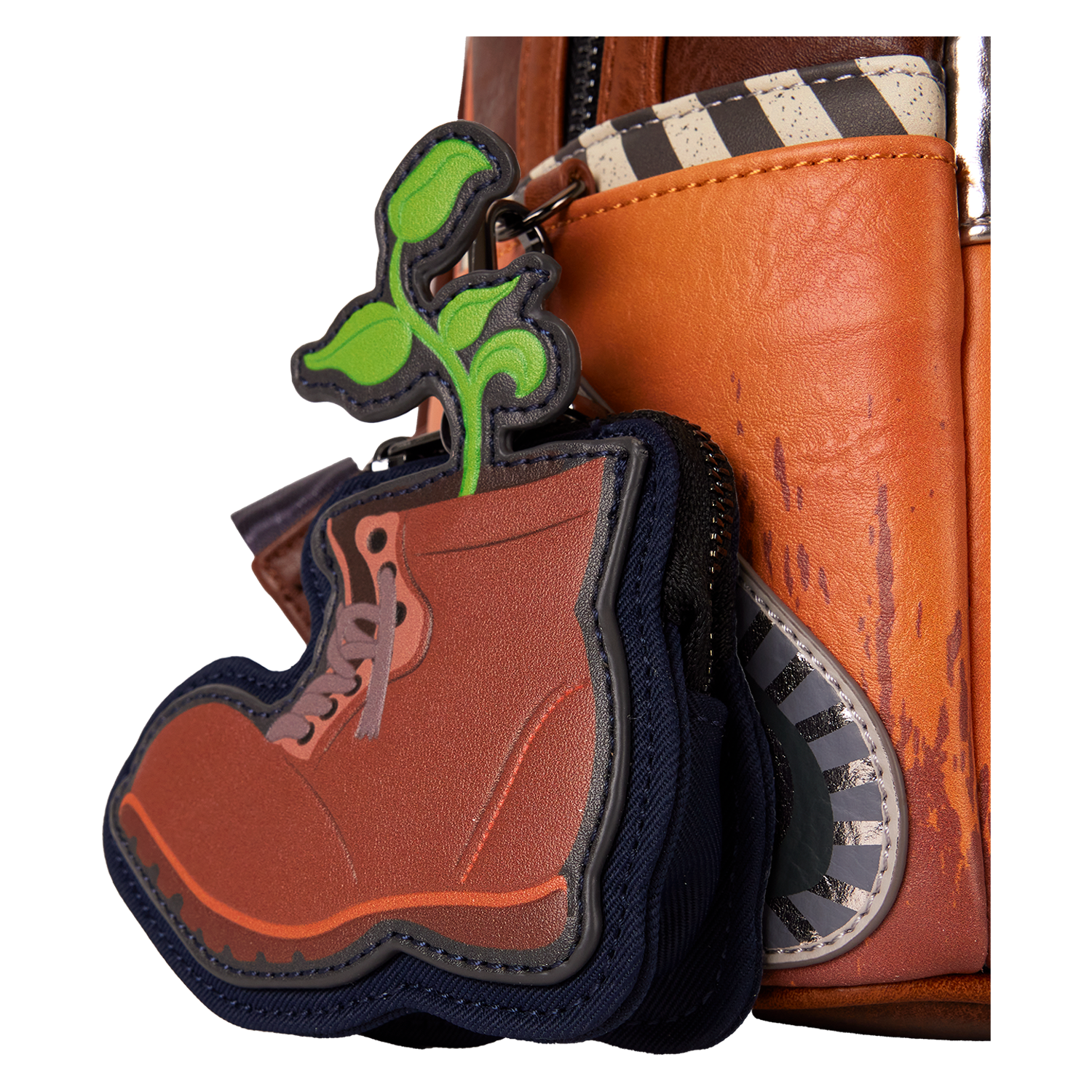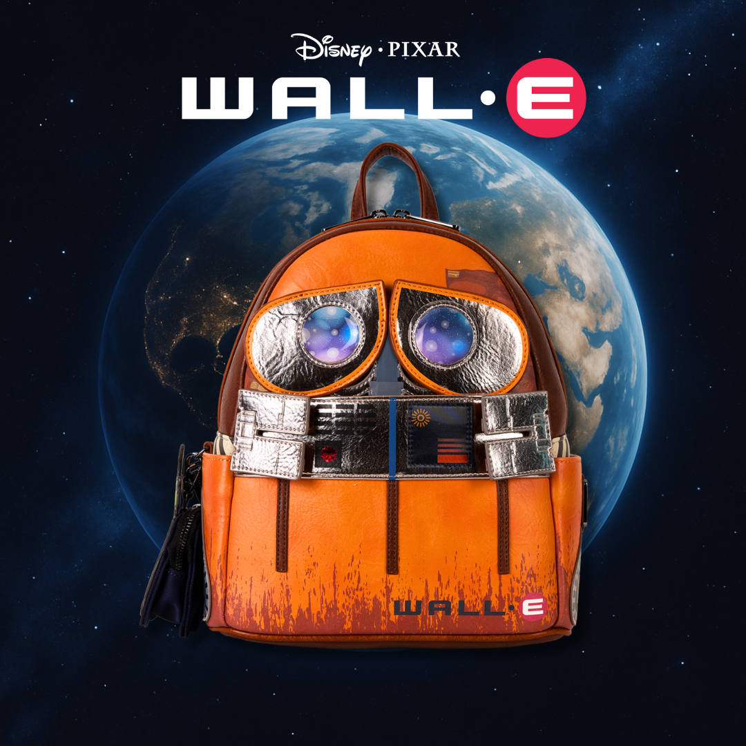 Everyone's favorite eco-friendly robot is here! We can't get over how cute this bag is, so we don't blame if you can't either. WALL-E comes to life in foil, debossed, lenticular, and textured metallic faux leather details on this bag. WALL-E's head moves up and down, and his hands move side to side. For an extra cute detail, you'll find a detachable coin bag in the shape of a brown boot that holds a plant. Bring along one of your fav Disney-Pixar characters!