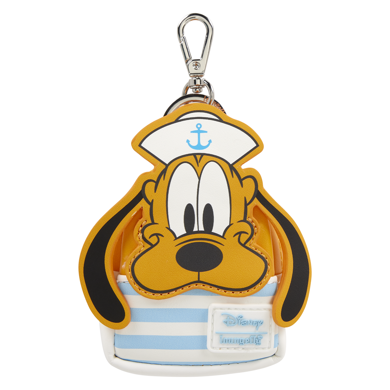 Each of these keychains features Pluto in a different outfit: a birthday ensemble, a sailor's outfit, a vacation outfit, a raincoat, a winter ensemble, and a pinstriped dapper ensemble. Collect them all and accessorize your other Loungefly accessories!